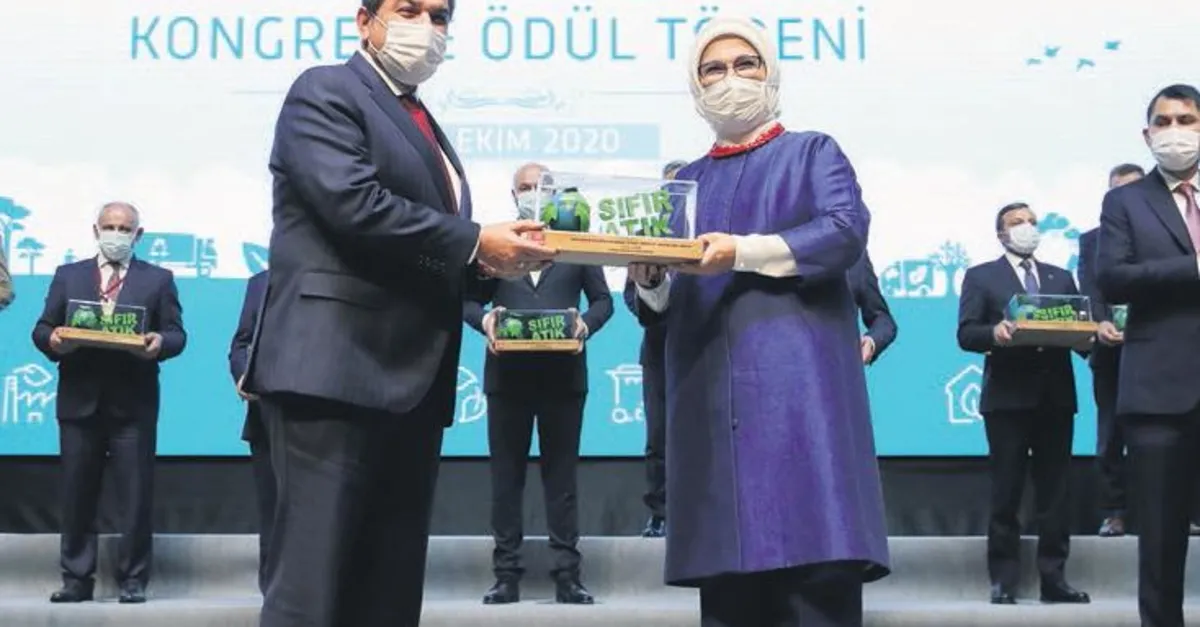 Sıfır atık projesinin öncüsü Cumhurbaşkanı Recep Tayyip Erdoğan'ın eşi Emine Erdoğan, ATO Congresium'da düzenlenen Sıfır Atık ve Belediyeler Kongre ve Ödül Töreni'nde konuştu. Sıfır atık projesi kapsamında kısa sürede büyük mesafe aldıklarını söyleyen Erdoğan maske atıklarına dikkat çekti. Maskelerin çevreye atılmaması uyarısında bulunan Erdoğan şu mesajları verdi: