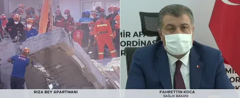 Depremin vurduğu için kritik uyarılarda bulunan Sağlık Bakanı Koca "Depremin de tesiriyle İzmir'de şartlar, virüs için elverişli hale geldi. Kurallara uyarak yeni can kayıplarının önüne geçelim" dedi.