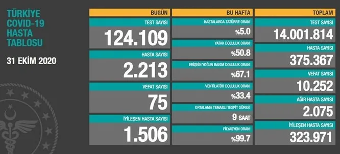 SON DAKİKA... 1 KASIM KORONAVİRÜS VERİLERİ