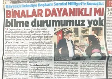Bayraklı Belediyesi Deprem Etüt Merkezince söz konusu yapılar hakkında re'sen riskli yapı tespiti yetkisi olmasına rağmen bu çerçevede herhangi bir işlem yapılmadığı öğrenildi. Bakanlık kayıtlarında yapılan incelemede hiçbir başvuruya rastlanmadı. Bakanlık ise "Böyle bir tespit yapılıp Bakanlığımıza veya İl Müdürlüğümüze böyle bir başvuru yapılmamış" açıklamasında bulundu. İzmir Büyükşehir Belediyesi'nin söz konusu hüküm uyarınca da herhangi bir işlem yapmadığı öğrenildi. Diğer taraftan Bayraklı Belediye Başkanı Serdar Sandal da; "Yıkılan ve hasar gören binaların depreme dayanıklı olup olmadığını bilme gibi bir durumumuz yok. Bunu nerden bilebiliriz?" diyerek aslında böyle bir bildirimin hiçbir zaman yapılmadığını ortaya koymuş oldu. CHP Genel Başkan Yardımcısı Seyit Torun; "Bu apartmanlarla ilgili raporlar tutulmuş ve ilgililere iletilmiş" iddiasında bulunmuştu.