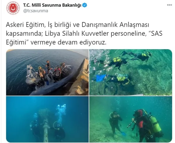 MSB paylaşımında, "Askeri Eğitim, İş birliği ve Danışmanlık Anlaşması kapsamında; Libya Silahlı Kuvvetler personeline, "SAS Eğitimi" vermeye devam ediyoruz" ifadelerini kullandı.