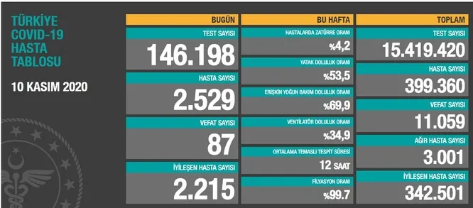 10 KASIM KORONAVİRÜS VERİLERİ