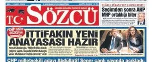 Sözcü gazetesinde ise "İttifakın yeni anayasası hazır" başlığıyla yer alan haberde, Kılıçdaroğlu'nun "Millet İttifakı olarak çalışma yaptık. Mutabakat metni elimizde" ifadelerine yer verilmişti.