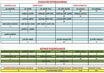 SABAH gazetesinin elde ettiği tabloya göre bir itfaiye eri 6-7 kademe birden atlatılarak müdür yapıldı. Bununla da yetinilmeyip, 3 ekip amiri ve bir amir de direkt müdür yapıldı. Köklü ve sistematik bir teşkilat hiyerarşisi ve teamüllüne sahip olan İstanbul İtfaiyesi'ndeki bu görev değişiklikleri teşkilattaki skandalın boyutunu gözler önüne serdi. Yapılan görev değişiklikleriyle CHP İstanbul yönetimi ve CHP Genel Merkez yönetimine yakın isimler kritik noktalara getirildi. Bunun yanı sıra KESK'e bağlı Tüm-Bel-Sen üyeleri de teşkilatta tek seferde 4-5 kademe atlatılarak teşkilatın sistematiğiyle oynandı.