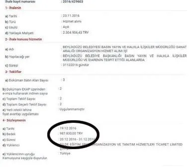 Beylikdüzü Belediyesi, SABAH'ın haberini doğruladı. Belediyeden yapılan açıklamada, 17 sanatçı ve yazarla söyleşi etkinliğinin gerçekleşmemesine rağmen ihaleyi alan Dilde Eğitim Spor Organizasyon ve Tanıtım Hizmetleri Ticaret Limited Şirketi'ne ödeme yapıldığı kabul edildi. Açıklamada, "Yüklenici firmaya söyleşiler için 38.250 TL + KDV tutarındaki ödemenin sehven yapıldığı idaremizce tespit edilmiştir. Sehven ödenen tutar, yüklenici firmadan talep edilmiş ve Belediyemize iadesi sağlanmıştır" iddiasında bulunuldu. Söz konusu geri ödemenin ise ne zaman yapıldığına ilişkin bilgi paylaşılmadı. Belediyenin açıklamasında etkinlik kapsamında yer alan kalemler de sıralandı. Ancak 987 bin liranın hangi kalemlere harcandığına ilişkin hiçbir bilgi paylaşılmaması dikkat çekti. İBB Başkanı Ekrem İmamoğlu ise Beylikdüzü Belediye Başkanlığı döneminde yaşanan usulsüzler hakkında suskunluğunu sürdürüyor.