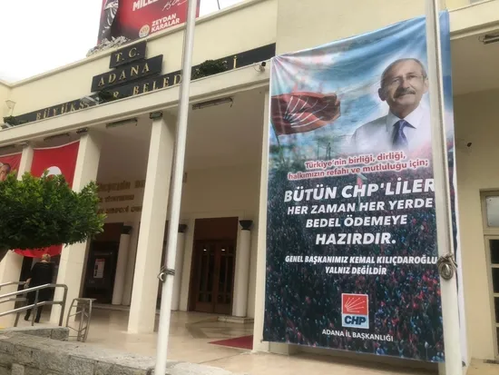 CHP Adana İl Başkanlığı, işçilerin maaşlarını ödemediği gerekçesiyle eleştirilen Adana Büyükşehir Belediyesi'nin ana giriş kapısına parti afişi astırdı. CHP Genel Başkanı Kemal Kılıçdaroğlu'nun fotoğrafının yer aldığı afişte, "Türkiye'nin birliği, dirliği, halkımızın refahı ve mutluluğu için bütün CHP'liler her zaman her yerde bedel ödemeye hazırdır. Genel Başkanımız Kemal Kılıçdaroğlu yalnız değildir" ifadeleri yer aldı.