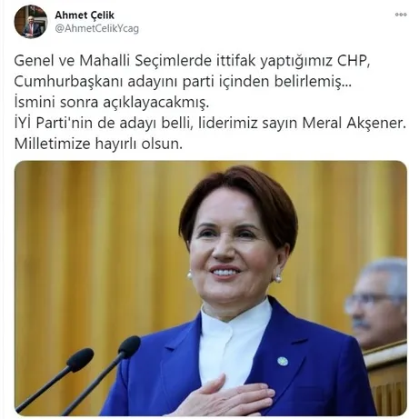 ÇELİK: "İYİ PARTİ'NİN ADAYI BELLİ, LİDERİMİZ MERAL AKŞENER"