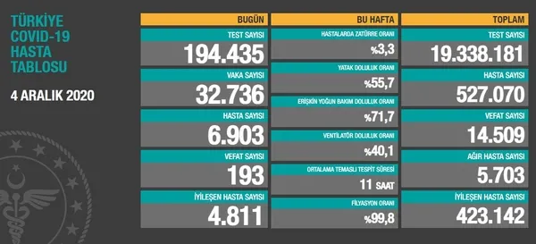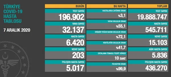 Sağlık Bakanı Fahrettin Koca Twitter hesabından son dakika olarak 8 Aralık koronavirüs tablosu verilerini paylaştı. Türkiye corona virüsü vaka sayısı kaç oldu? sorusu cevabı ve Ankara, İzmir, İstanbul korona son durum verilerinden detaylar şöyle;