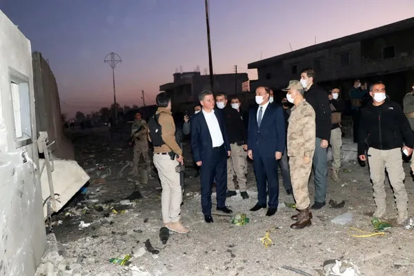Şanlıurfa Valisi Abdullah Erin, 2 askerin şehit düştüğü, 8 askerin de yaralanmasıyla sonuçlanan bombalı araç saldırısının gerçekleştirildiği Suriye-Resulayn Haseke-2 yol kontrol noktasında incelemelerde bulundu.
