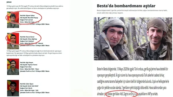Örgüt önceki gün kendi yayın organlarında yaptığı açıklamada ise 13 Mayıs'taki operasyonda öldürülen teröristlerden ikisinin fotoğrafını farklı kod isimle yayınlayarak, "Adil Zagros ve Eriş Cudi kod adlı teröristler o bombardımandan sağ olarak çıktılar" dedi. Teröristlerin yayınlanan fotoğrafı üzerinde çalışma yapan İstihbarat birimleri o fotoğraftaki teröristlerin 7 ay önceki Cudi'deki operasyonda öldüğü belirlenen ve örgüt tarafından da itiraf edilen Nurullah Kayaş ile Cihan Ağırbaş olduğunu tespit etti. Örgüt iki teröristi aylar sonra Adil Zagros ve Êriş Cudi kod adıyla sözde iki kahraman olarak gösterip onların ağzından kahramanlık hikayesi yazdı.