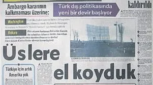 1974 Kıbrıs Barış Harekâtı'ndan bir yıl sonra ABD, ürettiği silah sistemleri yedek parçalarının doğrudan veya dolaylı olarak NATO ülkeleri üzerinden Türkiye'ye satışını engelledi. Parası ödenen Fantom uçakları Türkiye'ye teslim edilmedi. Bakım için ABD'ye gönderilen C-130 uçakları iade edilmedi. Türkiye'nin, bu ambargolara verdiği en sert karşılık; soğuk savaş döneminde ABD için kritik öneme sahip Türkiye'deki bütün Amerikan üs ve tesislerinin TSK'nın kontrolüne alınması oldu.
