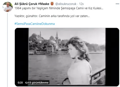 1964 yapımı bir Yeşilçam filminde Şemsipaşa Camii ve Kız Kulesi... Yazıktır, günahtır. Caminin arka tarafında yol var zaten...#SemsiPasaCamiineDokunma pic.twitter.com/THljqZFcFl