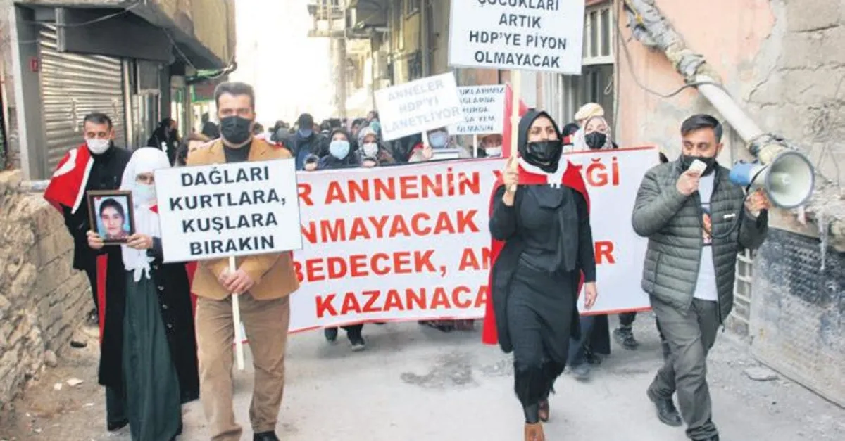 Aysel Bozkurt (38), PKK tarafından kaçırılan 17 yaşındaki kuzeni Süleyman Çetinkaya için eylem yaptığını belirterek, "Kuzenim 30 Ağustos 2019'da kayboldu. 3 gün sonra Diyarbakır HDP il binası önünde oturma eylemi başlattık. Eylemi başlatmamızın ardından kuzenim telefon açıp Suriye'de olduğunu, kaçırıldığını söyledi. PKK anneleri mezar taşlarına bakmaya mahkûm etti. HDP Kürt çocuklarını altın tepside PKK'ya sunuyor. HDP ve PKK 30 yıldır bize 3 şey öğretti. Birincisi çocuklarımızı kaçırıp dağa göndermeleri, ikincisi çocuklarımızın zihinlerini yıkayarak eline taş ve molotof vererek sokağa dökmesi, üçüncüsü ise annelerimizi mezar taşlarına bakmaya mahkûm etmesi. HDP'nin bize verdiği tek şey bu. Tek siyasetleri bu, Kürt halkına soykırım yapmak" dedi.