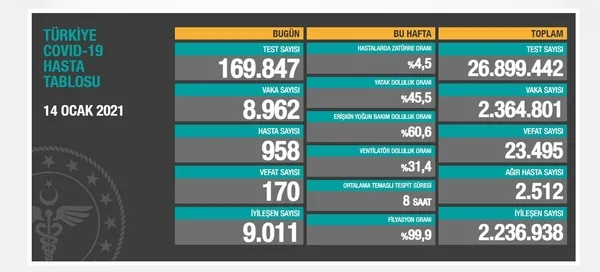 14 OCAK KORONAVİRÜS VERİLERİ