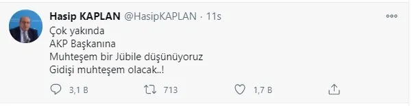 Sosyal medya hesabı üzerinden yaptığı paylaşımla Başkan Recep Tayyip Erdoğan'ı tehdit eden Kaplan, "Çok yakında AKP Başkanına Muhteşem bir Jübile düşünüyoruz. Gidişi muhteşem olacak!" dedi. Kaplan'ın paylaşımına büyük tepki gösterildi.