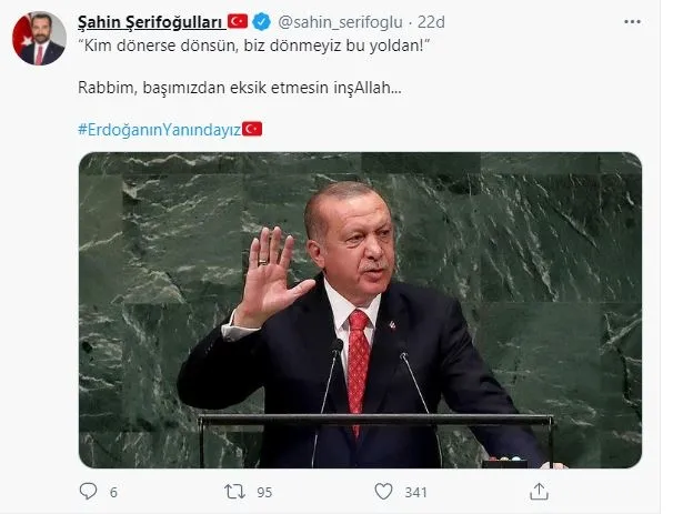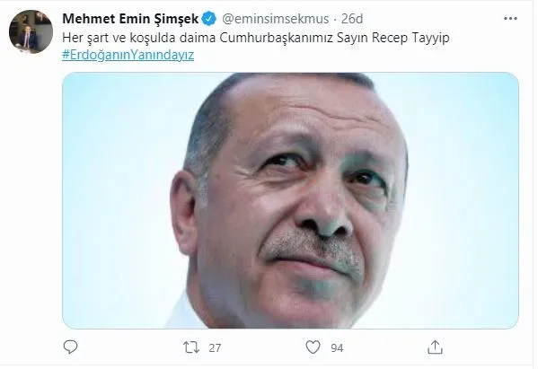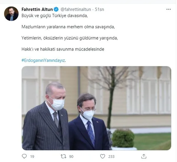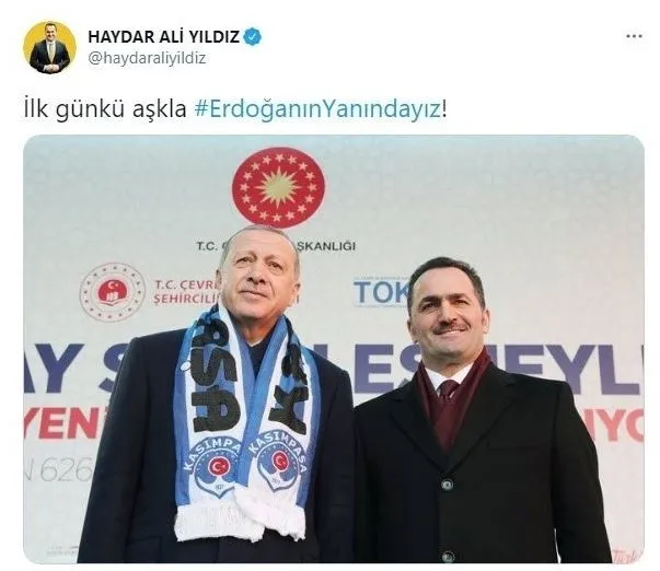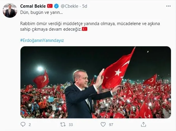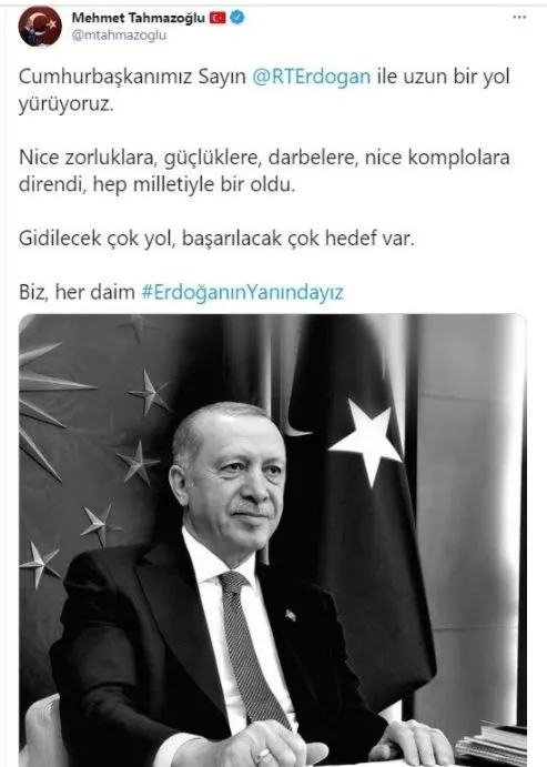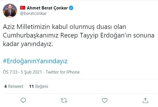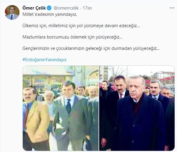 Twitter hesabı üzerinden #ErdoğanınYanındayız etiketiyle paylaşım yapan Ömer Çelik, mesajında şunları ifade etti: