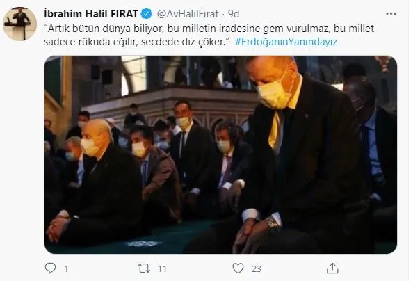 "Millet iradesinin yanındayız. Ülkemiz için, milletimiz için yol yürümeye devam edeceğiz... Mazlumlara borcumuzu ödemek için yürüyeceğiz... Gençlerimizin ve çocuklarımızın geleceği için durmadan yürüyeceğiz..."