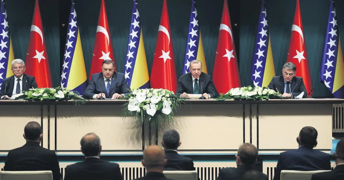 Başkan Recep Tayyip Erdoğan ve Bosna Hersek Devlet Başkanlığı Konseyi üyeleri, Külliye'deki görüşmelerin ardından ortak basın toplantısı düzenledi. İki ülke arasında anlaşmalar imzalanmasından sonra açıklamalarda bulunan Erdoğan, şunları kaydetti: