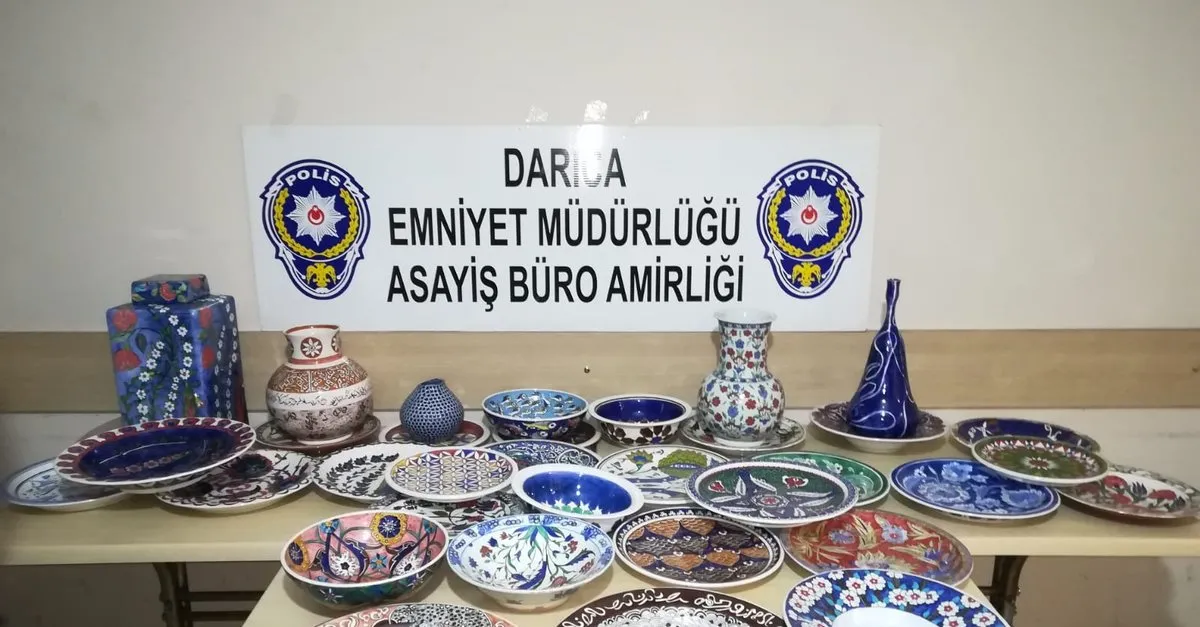 Kocaeli Darıca İlçesi Osmangazi Mahallesinde, bir çini sanatçısına ait olan atölyeye girerek piyasa değeri 650 bin lira olan 200 çini eseri çaldığı tespit edilen M.K.A isimli şüpheli, yakalanarak gözaltına alındı.