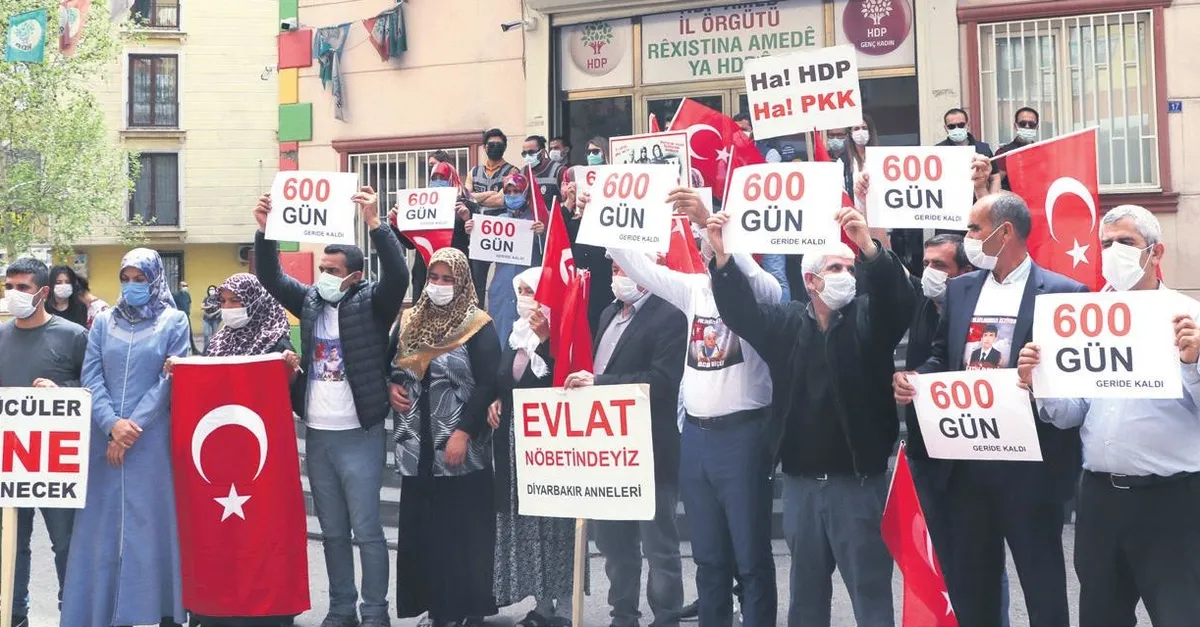 Terör örgütünce kaçırılan çocukları için HDP Diyarbakır İl Binası önünde oturma eylemi yapan annelerin, evlat nöbeti 602'nci gününe girdi. 228 ailenin sürdürdüğü eylemin 600 günü geride bırakması nedeniyle aileler açıklama yaptı. Evlat nöbeti tutan aileler adına açıklamayı 2 yıl önce 16 yaşındayken kaçırılan Mustafa'nın annesi kanser hastası Ayşegül Biçer yaptı. "Değil 600 gün, 600 yıl da geçse annelerin direnişi sürecek" diyen Biçer, "HDP, 600 gündür burada feryat figan eden anne ve babaları görmedi, duymadı. Sizi vicdana, merhamete çağırıyorum. Bu yanan yürekleri görmediniz, bu dökülen gözyaşlarını görmediniz. Buradan CHP, İYİ Parti, DEVA ve Gelecek Partisi'ne de sesleniyorum; nerede sizde vicdan, nerede sizde merhamet? Siyaset yapıyorsunuz ama 600 gündür burada feryat figan eden bu anne ve babaları görmediniz, görmezlikten geldiniz. Vatanımız, bayrağımız için de nöbet tutuyoruz. Buradan bir kere daha dile getirmek istiyoruz; biz buraya oturduğumuzda 'ya zafer ya ölüm' demiştik. Kanımızın son damlasına kadar biz mücadele edeceğiz ve hakkımız olan evlatları PKK terör örgütünden söke söke alacağımıza inanıyoruz. Değil 600 gün, 600 yıl da geçse annelerin direnişi devam edecektir. Bu eylem sonunda çocuklarımızı alarak evlerimize döneceğiz. Kazanan anneler olacak, PKK ise tarihin çöplüğüne gidecektir" ifadelerini kullandı.