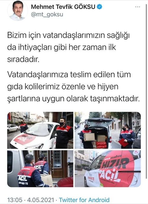 İBB AK Parti Grup Başkanvekili ve Esenler Belediyesi Başkanı Mehmet Tevfik Göksu, Küçükçekmece Belediyesi'nin çöp aracıyla gıda yardımlarını dağıtmasına gönderme yaparak, "Bizim için vatandaşlarımızın sağlığı da ihtiyaçları gibi her zaman ilk sıradadır. Vatandaşlarımıza teslim edilen tüm gıda kolilerimiz özenle ve hijyen şartlarına uygun olarak taşınmaktadır" ifadelerini kullandı.