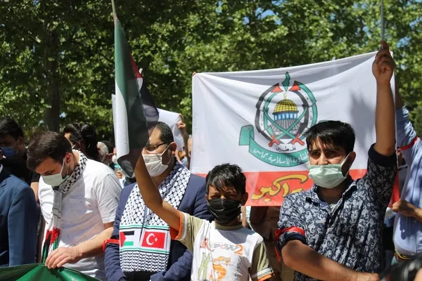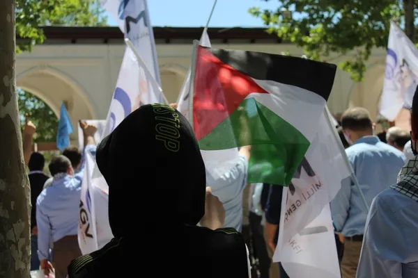 İsrail'in yaptığı saldırılara karşı, "Oluk oluk kan aksa, kurtulacak El Aksa" ve "Katil İsrail, Filistin'den defol" sloganları atarak Filistinlilere destek veren grup, sloganların ardından Kudüs'te şehit olan Filistinliler için gıyabi cenaze namazı da kıldı.