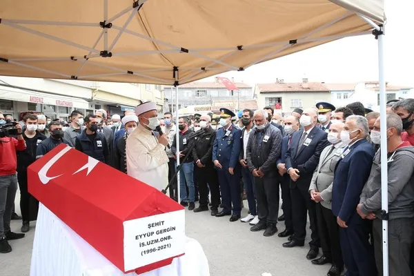 Irak'ın kuzeyinde sürdürülen Pençe- Yıldırım Harekatı sırasında ikmal faaliyeti sırasında helikopterin palinin çarpması sonucu şehit düşen Uzman Onbaşı Eyyüp Gergin (25), memleketi Kayseri'de gözyaşları arasında son yolculuğuna uğurlandı. Oğlunun tabutuna sarılan şehidin annesi Nihal Gergin; "Kurban olurum oğlum ben senin al bayrağına" diyerek gözyaşı döktü.