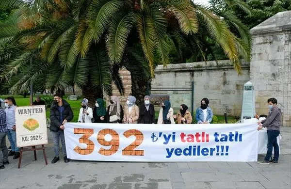 AK Parti İstanbul İl Gençlik Kolları üyesi bir grup, Meclis Denetim Komisyonu raporuyla ortaya çıkan usulsüzlükleri protesto etmek amacıyla Saraçhane'de bir araya geldi. İBB yönetimin kilosunu 392 liraya aldığını belirttiği tatlının hangi tatlı olduğunu soran gençler, 392 lirayı tatlı tatlı yediler pankartı açtı. Vatandaşlara baklava da dağıtan gençler, yaptıkları araştırmada kilosu 392 liraya tatlı olmadığını ifade ederek İBB yönetiminin açıklama yapmasını istedi.