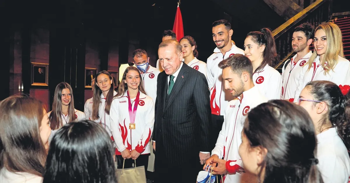Başkan Erdoğan, Aerobik Cimnastik Dünya Şampiyonası’nda altın madalya kazanarak göğsümüzü kabartan Ayşe Begüm Onbaşı ile madalya alan diğer sporcuları kabul etti
