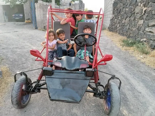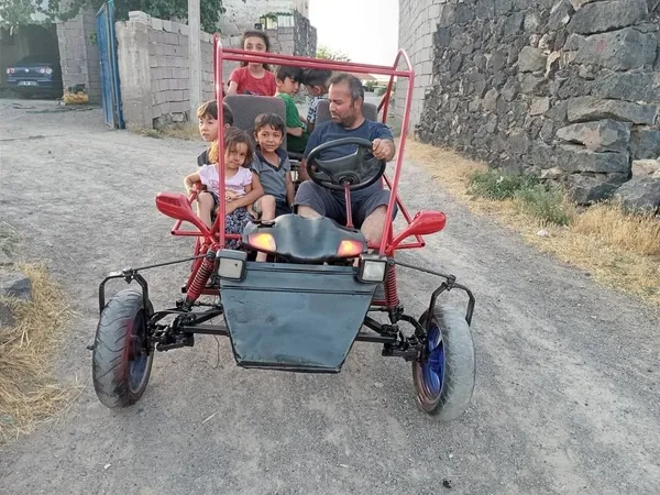 Aracı yaparken en büyük yardımcılarının küçük kızı ve oğlu olduğunu belirten Durak, "Karacaşar'da bağa tarlaya gitmek için ideal bir araç. Kullanımı çok pratik. Sadece gaz ve freni var. Bugün ilk test sürüşünü de çok şükür başarıyla gerçekleştirdik." dedi.