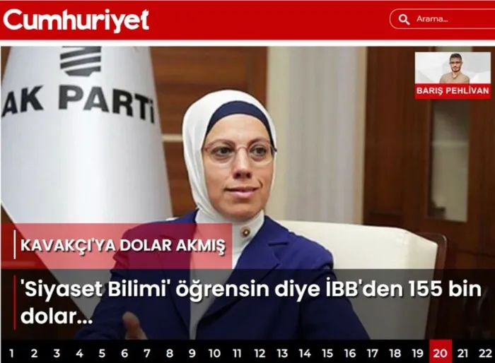 Cumhuriyet Gazetesi’nden Barış Pehlivan, 2008 yılında İBB personelinin eğitim alması için yurt dışına burslu olarak gönderilmesini köşesine taşıyarak Ravza Kavakcı Kan’ın sırf bu burs için İBB’de işe alındığı yalanını köşesine taşıdı. AK Parti İstanbul Milletvekili Ravza Kavakçı Kan, Cumhuriyet’in manipülasyon içeren yazısına sosyal medyadan tepki göstererek, “Daha önce defalarca yalanlanmasına ve yaptırım uygulanmasına rağmen Cumhuriyet gazetesi manipülasyon amaçlı yalan ve tezvirat üretmeye devam ediyor. Gazetecilik bu değil. Çok yazık. Tabii ki hukuken elimizden geleni ardımıza koymayacağız” dedi