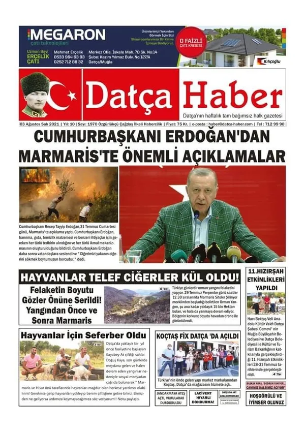 Cumhurbaşkanı Recep Tayyip Erdoğan'ın yangınlar dolayısıyla Marmaris'te önemli açıklamalar yapmasını yazı işleri müdürü olduğu yerel gazetenin manşetinden haber yapan Datça gazetesi kadın muhabirine Datça Belediye başkanı Gürsel Uçar'dan çirkin sözler: "Bu haberi kaç çay paketi kaparak yaptın"