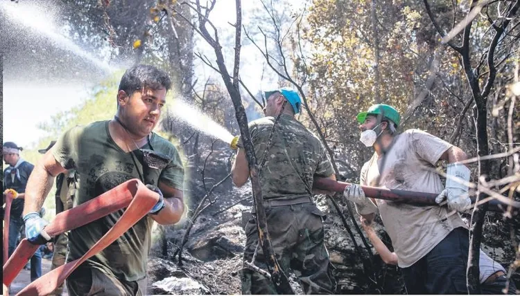 Azerbaycan'dan gelen 100 kişilik itfaiye ekibi Marmaris'in Hisarönü, Armutalanı ve Turunç mahallelerinde çalışmalarına devam ediyor. SABAH ekibi, yangının etkili olduğu alanlarda alevleri söndürmek için yoğun çaba sarf eden Azerbaycanlı itfaiye erleriyle beraber çalışmalara katıldı. SABAH'a konuşan Azeri itfaiyecilerden Hafiz Memmedov, "3 gün önce geldik ve geldiğimiz günden beri hiç uyumadık. Çünkü biz buraya uyumaya gelmedik. İnşallah her şey güzel olur. Kardeşlerimizin dirayeti bize güç veriyor. Dün Şirinyer Tepesinde çıkan yangında alevler üzerimize doğru geldi. Bizi aşıp evlere dayandı. Biz yılmadan, korkmadan mücadelemizle yangını söndürüp evleri kurtardık" dedi.