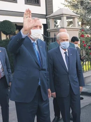 Erdoğan ve Bahçeli'nin bir araya geldiği görüşmeye ilişkin Cumhurbaşkanlığı'nın Twitter hesabından, "Cumhurbaşkanı Recep Tayyip Erdoğan, MHP Genel Başkanı Devlet Bahçeli'yi evinde ziyaret etti" açıklaması yapıldı. Erdoğan ve Bahçeli'nin görüşmesine ilişkin fotoğraf da paylaşıldı. ANKARA