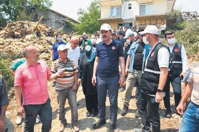 Orman yangınından etkilenen mahallelerde vatandaşları ziyaret eden Bakan Kurum, “Evlerini kaybeden vatandaşlarımıza yeni yuvalarını yapacak ve 1 yıl içinde teslim edeceğiz. Bunun sözünü verdik” dedi