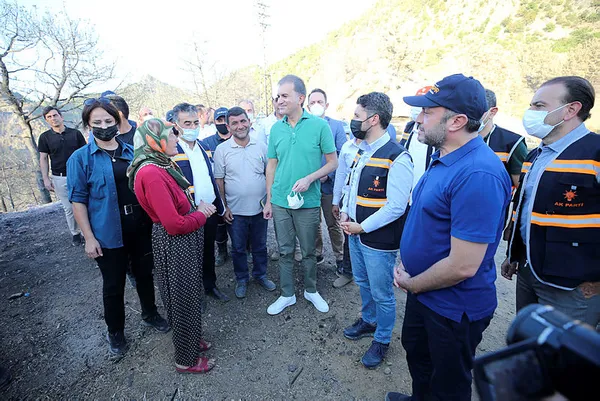 AK Parti Genel Başkan Yardımcısı ve Parti Sözcüsü Ömer Çelik, Mersin'in Aydıncık ve Silifke ilçelerindeki orman yangınında zarar gören alanlarda incelemede bulundu.