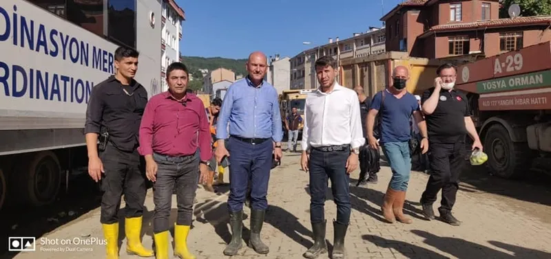 İçişleri Bakanı Süleyman Soylu, Çevre ve Şehircilik Bakanı Murat Kurum, afet bölgesinde Mobil Aşevi ile destek veren ve canla başla çalışan Pursaklar Belediye personellerini ziyaret etti.