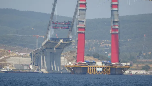 Çanakkale Boğazı'nda Avrupa ve Asya kıtalarını ilk kez birbirine bağlayacak 1915 Çanakkale Köprüsü'ne 30 tabliye blokunun montajı yapıldı. Cumhuriyetin 100'üncü kuruluş yılını simgeleyen kuleler arasındaki 2023 metrelik orta açıklıkta, her biri 45 metre genişliğinde, 48 metre uzunluğunda ve 700 ton ağırlığındaki mega tabliye bloklarının birleştirilmesiyle Çanakkale Köprüsü'nün yolu da görünmeye başladı. 18 Mart 2022'de hizmete açılması planlanan köprü sayesinde Çanakkale Boğazı, 6 dakikada geçilecek ve kesintisiz ulaşım sağlanacak.