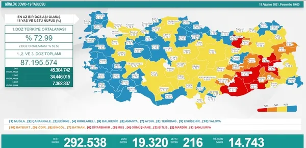 21 AĞUSTOS KORONAVİRÜS VERİLERİ