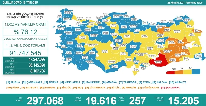 26 AĞUSTOS TÜRKİYE CORONA VİRÜS VAKA VE ÖLÜ SAYILARI