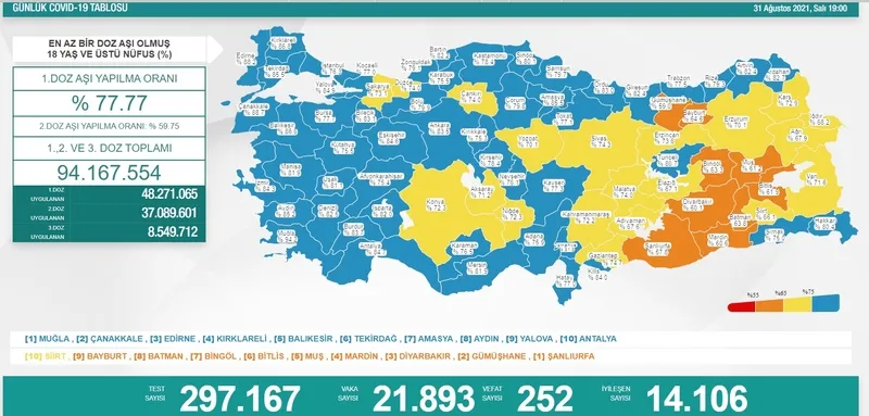 1 EYLÜL TÜRKİYE CORONA VİRÜS VAKA VE ÖLÜ SAYILARI