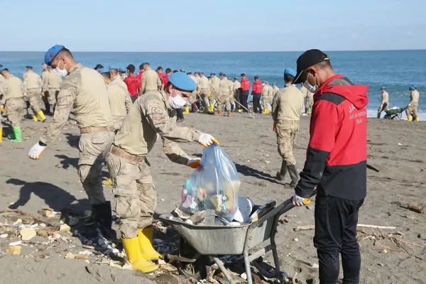 Belediye Başkanından sahilde çevre temizliği yapan askerlere teşekkür