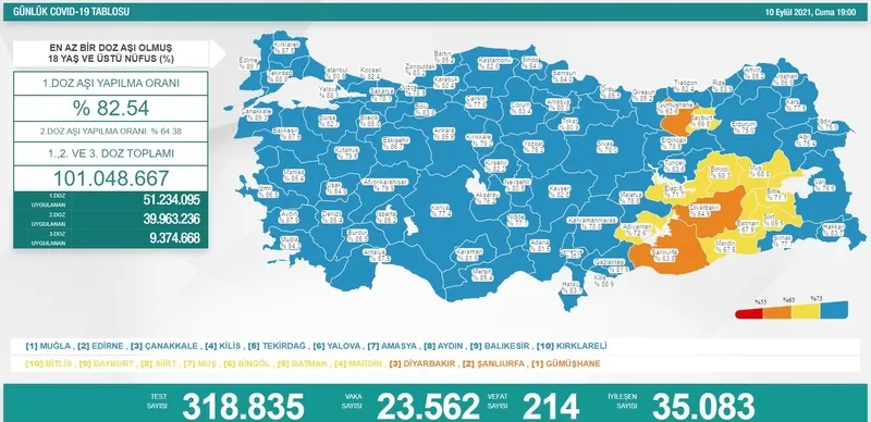 11 EYLÜL TÜRKİYE CORONA VİRÜS VAKA VE ÖLÜ SAYILARI