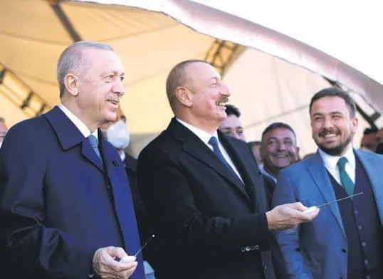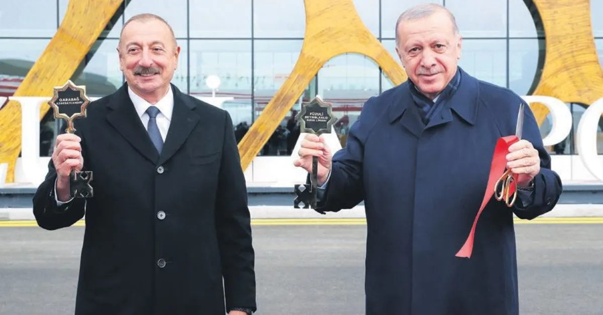 CUMHURBAŞKANI Recep Tayyip Erdoğan, özel uçak "TUR" ile Azerbaycan'a geldi. Uçak, Azerbaycan'ın işgalden kurtardığı topraklarda inşa ettiği ilk havalimanı olan Füzuli Uluslararası Havalimanı'na iniş yaptı. Azerbaycan Cumhurbaşkanı İlham Aliyev tarafından karşılanan Erdoğan, Fuzuli Uluslararası Havalimanı'na inen ilk devlet başkanı oldu. Yeni havalimanının açılış kurdelesini kesen Erdoğan ve Aliyev, daha sonra havalimanı binasını gezip, yetkililerden bilgi aldı. Erdoğan ve Aliyev'e yerel kıyafetli kadınlar tarafından günün anısına, havalimanının sembolik anahtarları hediye edildi. Havalimanındaki incelemenin ardından iki lider, Ahmetbeyli-Fuzuli-Şuşa ve Ahmetbeyli-Horadiz- Mincivan-Ağbend karayolu inşaatı temel atma törenine katıldı. Bölgedeki çalışmalar hakkında yetkililerden bilgi alan Erdoğan ve Aliyev, butona basarak kara yolutemeline ilk harcı döktü. Cumhurbaşkanı Erdoğan ve Azerbaycan Cumhurbaşkanı Aliyev, günün anısına imzaladıkları metni, kapsül içinde temele attı.