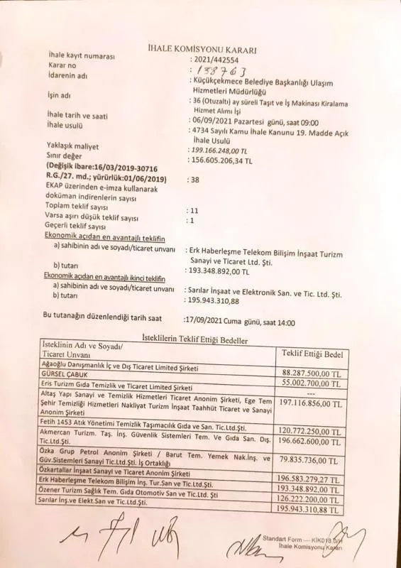 Çocuk parkına çizilen PKK sembolleriyle gündeme gelen CHP'li Küçükçekmece Belediyesi, şimdi de yolsuzluk iddialarıyla sarsılıyor. Belediye, kısa bir süre önce farklı türlerde 295 aracın kiralanması için jet hızıyla ihale açtı. İhale 193 milyon lira bedelle Erk Haberleşme Telekom Bilişim İnşaat Turizm Sanayi ve Ticaret Ltd. Şti. isimli şirkete verildi. 10 firmanın 55 milyon lira ile 120 milyon lira arasında farklı fiyatlarla teklif götürdüğü ihalede, Erk Haberleşme'den daha düşük teklif verdikleri halde ihale dışı bırakılan 4 firma Kamu İhale Kurumu'na (KİK) şikâyette bulundu. Şikâyet dilekçelerinde Küçükçekmece Belediyesi'nin, satın alım maaliyeti 96 milyon lira olan farklı işlevlerdeki 295 aracı sadece 3 yıllığına kiralamak için 193 milyon lira ödediği, bu yolla vatandaşın cebinden fazladan 100 milyon lira çıktığı vurgulandı.