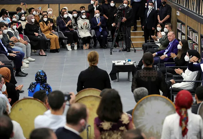 Başkan Erdoğan'ın, dün Batman'da Şehit Şenay Aybüke Yalçın İl Halk Kütüphanesi'nde gerçekleştirdiği gençlerle buluşma programının görüntüleri paylaşıldı.