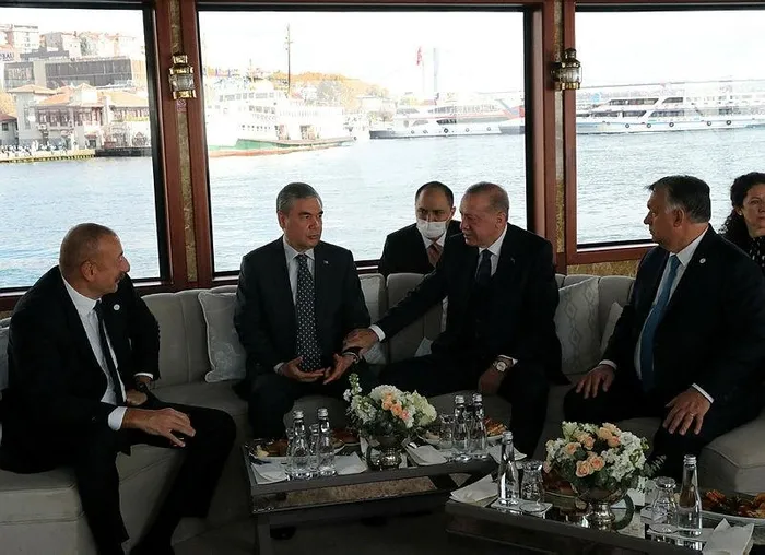 Başkan Recep Tayyip Erdoğan, Azerbaycan Cumhurbaşkanı İlham Aliyev, Kazakistan Cumhurbaşkanı Kasım Cömert Tokayev, Kırgızistan Cumhurbaşkanı Sadır Caparov, Özbekistan Cumhurbaşkanı Şevket Mirziyoyev, Macaristan Başbakanı Viktor Orban, Türkmenistan Devlet Başkanı Gurbangulu Berdimuhamedov ve Türk Konseyi Genel Sekreteri Baghdad Amreyev teknede sohbet etti.