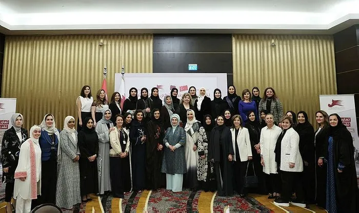 EMİNE Erdoğan, Katar-Türkiye Kadın Buluşması'nda konuştu: Sürdürülebilir kalkınmayla kadınların ekonomik ve sosyal olarak güçlenmesi arasında doğrudan bir ilişki var. Yani kadınlar, temel insan haklarını kullanmadığı, eğitimden ve istihdamdan mahrum kaldığı zaman kalkınmanın gerçekleşmesi mümkün değil.