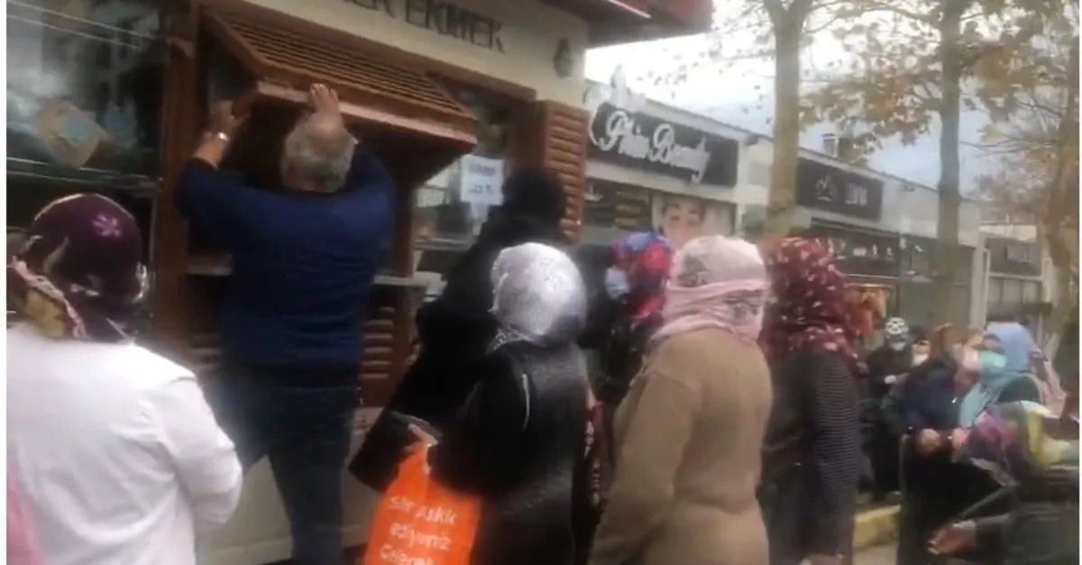 Sancaktepe'de çekilen görüntülerde içerisinde ekmek olan büfenin dışarıda kuyruk oluştuktan sonra açıldığı görüldü.