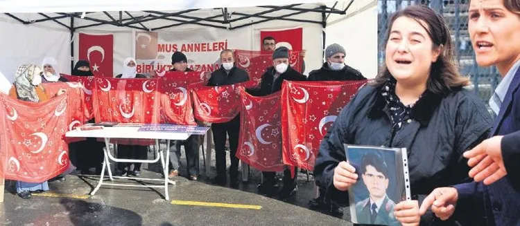 Muş'ta, çocuklarının PKK terör örgütü tarafından kandırılarak kaçırılmasından HDP'yi sorumlu tutan anneler, eylemlerini dondurucu soğukta da devam ettirdi. HDP İl Başkanlığı önünde nöbet tutan ailelerin umutlu bekleyişi sürüyor. Parti binası önüne gelen anneler, 36'ncı haftada da oturma eylemine devam etti. Dondurucu soğuğa rağmen "Yavrumu verin bana", "Anneler direniyor", "Artık yeter, bırakın evlatlarımızı" ve "Artık yeter, yakamızdan düşün" yazılı dövizler açan anneler, HDP ve PKK aleyhinde slogan atarak tepki gösterdi. 1995 yılında Sivas'ın Zara ilçesinde terör örgütü PKK'nın saldırısı sonucu şehit olan Astsubay Kıdemli Üstçavuş Murat Namdar'ın Bursa'da ikamet eden eşi Yıldız Namdar, Muşlu annelere ay yıldızlı eşarp gönderdi. 24 aileyle HDP önünde eyleme devam edeceklerini ifade eden annelerden Ayten Koçhan, "Oğlum, beni görüyor, duyuyorsan dön gel yavrum. Yolunuz yol değil. Burada hava soğuk, kış ama yine de burada nöbet tutacağız. Siz gelene kadar biz buradayız. Bayrak bayrağın üstüne olmaz, hükümet hükümetin üstüne olmaz. Onlar sizi kandırıyorlar. Dönün gelin devletinize teslim olun. Oğlum gelene kadar kar, kış demeden burada oturup bekleyeceğim. Dağda bir çocuk kalana kadar burada eyleme devam edeceğiz. Bize ay yıldızlı eşarp gönderen şehit eşine de çok teşekkür ediyoruz. Bizi yalnız bırakmadı" dedi.